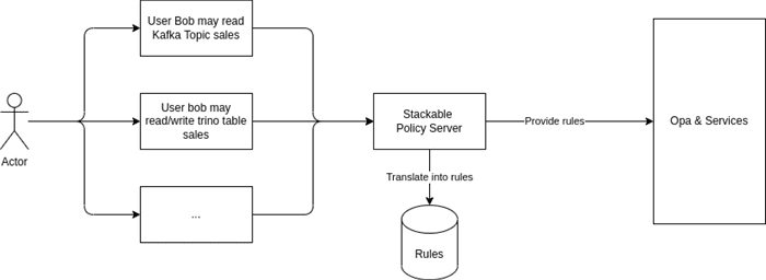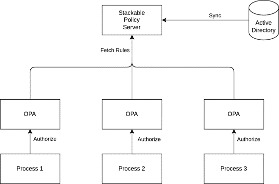 The Stackable Policy Server in this case is the central component that will be in charge of caching user to role mappings and other relevant data from a central directory service.